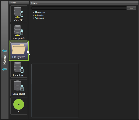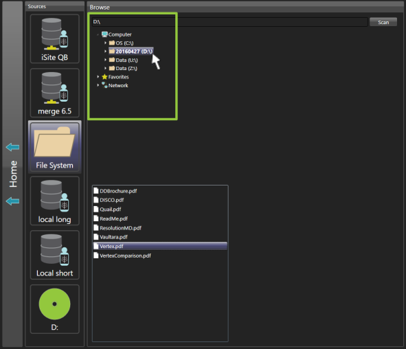 Step 2: In the Source Browser Column, navigate to the location of the desired non-DICOM data within the selected source.