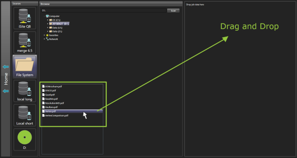 Step 5: Drag-and-drop the desired non-DICOM data file from the source browser preview to the Job Data Composer.