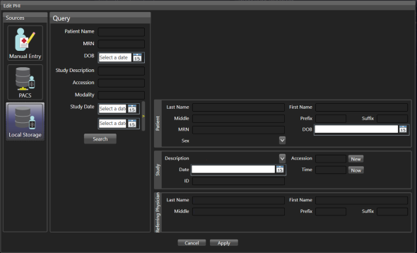 Step 1: Select the source of the desired non-DICOM data in the Sources Column.