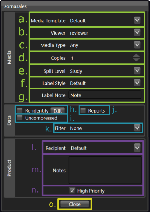 Click the Viewer dropdown toselect the desired viewer to embed on the DISC(s) from a predefined list set by your facility’s systems administrator.