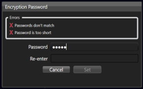 Step 1: Click the Set Password button. Auto-generation of encryption passwords available and can be enabled by your site Administrator.