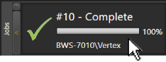 To view details for a job in the Job Queue, mouse over the Job Stage icon (Processing, Complete, or Fault) and hover until the job status panel appears.
